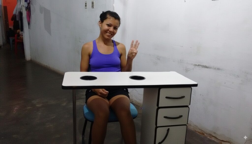 Aos 19 anos, cheguei a Fortaleza com uma mala cheia de sonhos. Foi a maternidade, em 2011, que me deu o empurrão que eu precisava. Decidi que seria manicure, uma profissão que me permitiria ter flexibilidade para ser a mãe que eu queria ser. Desde o primeiro curso, em 2013, nunca parei de estudar. Busquei conhecimento incansavelmente, em cursos e com a prática diária, para entregar sempre o melhor para minhas clientes.